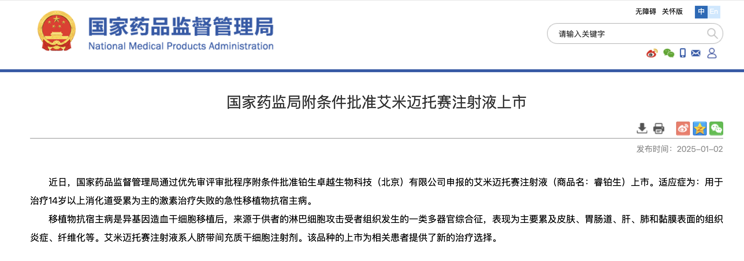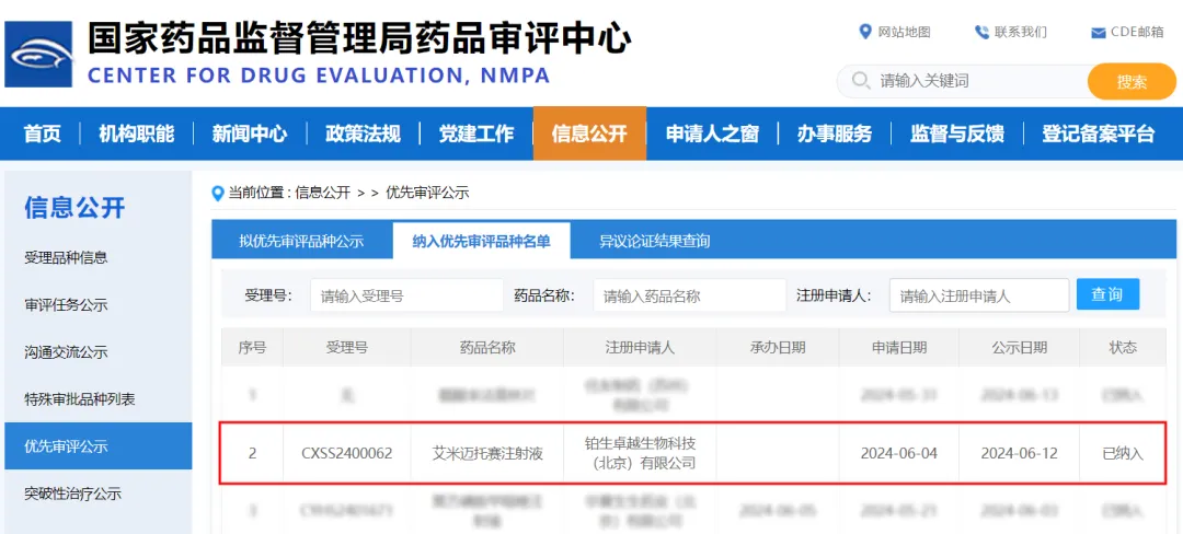 铂生生物自主研发的“艾米迈托赛注射液”成为全国首款获得NMPA新药上市申请(NDA)受理并纳入优先审评品种的干细胞新药(受理号:CXSS2400062)
